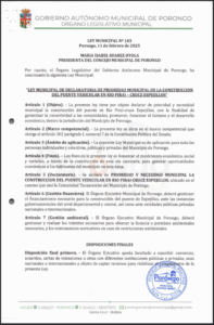 LEY MUNICIPAL DE DECLARATORIA DE PRIORIDAD MUNICIPAL DE LA CONSTRUCCION DEL PUENTE VEHICULAR EN RIO PIRAI - CRUCE ESPEJILLOS