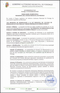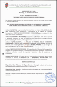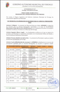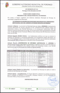 LEY MUNICIPAL DE APROBACION DE RECURSOS PARA EL CARNAVAL PORONGUEÑO 2026
