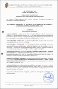 LEY MUNICIPAL QUE DECLARA "EL 19 DE MAYO DIA DE LA MASACRE EN TEREBINTO Y REIVINDICACION DE LAS LUCHAS POR LE 11%"