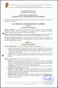 LEY MUNICIPAL DE PROMOCION DE LA MUJER