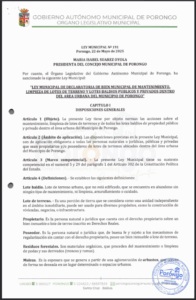 LEY MUNICIPAL DE DECLARACIÓN DE INTERES SOCIAL DE LA INTEGRACIÓN CAMINERA DEL MUNICIPIO DE PORONGO A LA RED VIAL FUNDAMENTAL DEL PAÍS