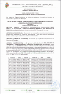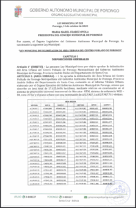 LEY MUNICIPAL DE DELIMITACION DE AREA URBANA DEL CENTRO POBLADO DE PORONGO METROPOLITANO
