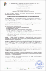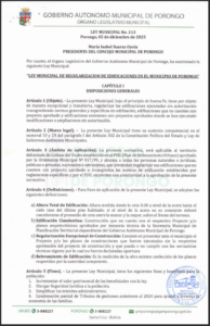 LEY MUNICIPAL DE REGULARIZACION DE EDIFICACIONES EN EL MUNICIPIO DE PORONGO