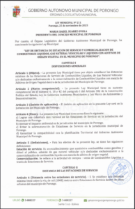 LEY DE DISTANCIA DE ESTACION DE SERVICIO Y COMERCIALIZACION DE COMBUSTIBLES LIQUIDOS, GAS NATURAL VEHICULAR Y LIQUIDOS CON ADITIVOS DE ORIGEN VEGETAL EN EL MUNICIPIO DE PORONGO