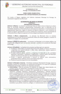 LEY MUNICIPAL DE APOYO AL DEPORTE